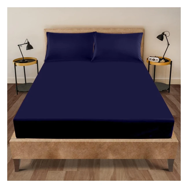 Premium Fitted Bed Sheet King Size - Navy - Soft & Smooth Material - Elasticated Corners
