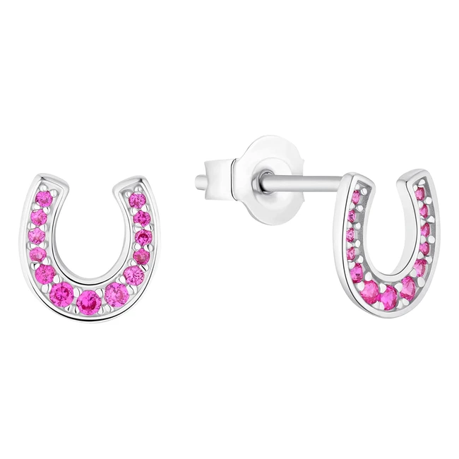 s.Oliver 2036449 Kinderohrringe 925 Sterling Silber mit synthetischem Zirkonia 0,8 cm - Silber Hufeisen - Schmuckgeschenkbox