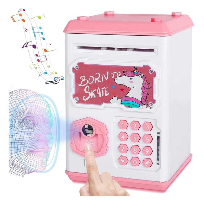 Salvadanaio Bambini Elettronico Unicorno - Scansione Facciale e Impronte Digitali - Mini ATM Cassaforte - Regalo Compleanno Natale