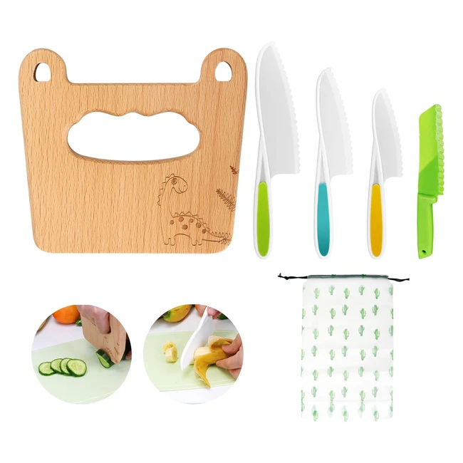 Set 5 Coltelli da Cucina per Bambini | GoodChef | Ref. 123 | Taglia e Cucina Frutta e Verdura | Dai 2 Anni | Dinosauri