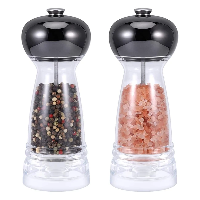 Set Macina Sale e Pepe Nero Ricaricabile Vevouk - Design Acrilico Trasparente - Macinapepe Ceramica Regolabile - 2 Pezzi