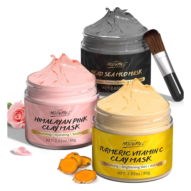 Set Maschere Viso Curcuma e Vitamina C - Fango Mar Morto e Argilla Himalaya - Riduzione Acne 240g