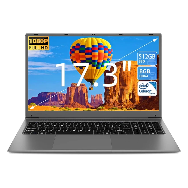 SGIN 17 Zoll Laptop 8GB RAM 512GB SSD Celeron Quadcore bis zu 2.8GHz FHD 2450G WiFi Bluetooth 42 erweiterbarer Speicher 512GB TF