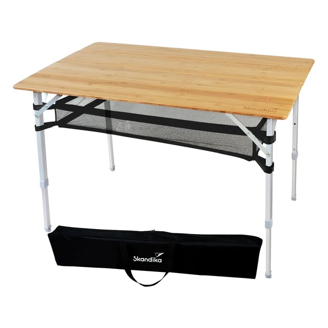 Skandika Tolja Bambus Campingtisch faltbarer Tisch mit Netzregal verschiedene Größen 3-Wege höhenverstellbar Aluminium Holz wetterfest UV-beständig Camping Gartentisch Balkon