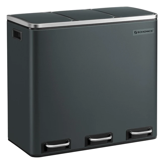 Songmics Abfallbehälter Mülltrennsystem mit 3 Kunststoff-Inneneimern Pedal-Mülleimer Fingerabdruckfreies Edelstahl mit Griffen Rauchgrau 54 l