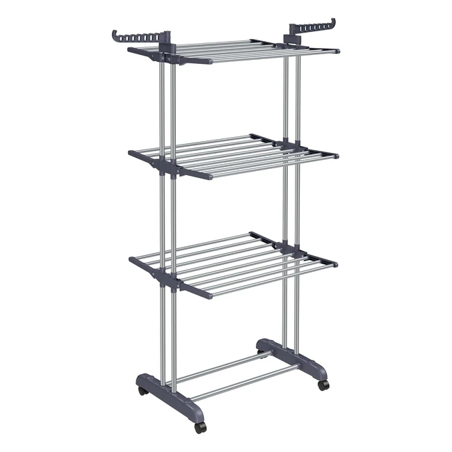 Songmics LLR701G01 Edelstahl Wäscheständer 4 Ebenen Flügelwäscheständer klappbare Flügel mit Rädern 64 x 126 x 172 cm groß einfache Montage für Innen- und Außenbereich grau
