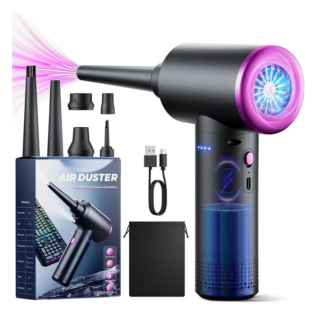 Purificateur d'Air Comprimé Multifonction - Vitesse Élevée, Faible Bruit, Faible Consommation d'Énergie - Élimine Efficacement la Poussière - 3 Niveaux de Vitesse d'Air - Convient au Nettoyage des PC, Claviers, Caméras, Climatiseurs - Lumière LED Intégrée - Batterie Puissante et Charge Rapide - 6 Buses Différentes pour Divers Scénarios d'Utilisation - Idéal pour le Dépoussiérage