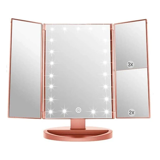 Specchio da tavolo con luci LED, ingrandimento 1x 2x 3x, USB o wireless, rosa oro