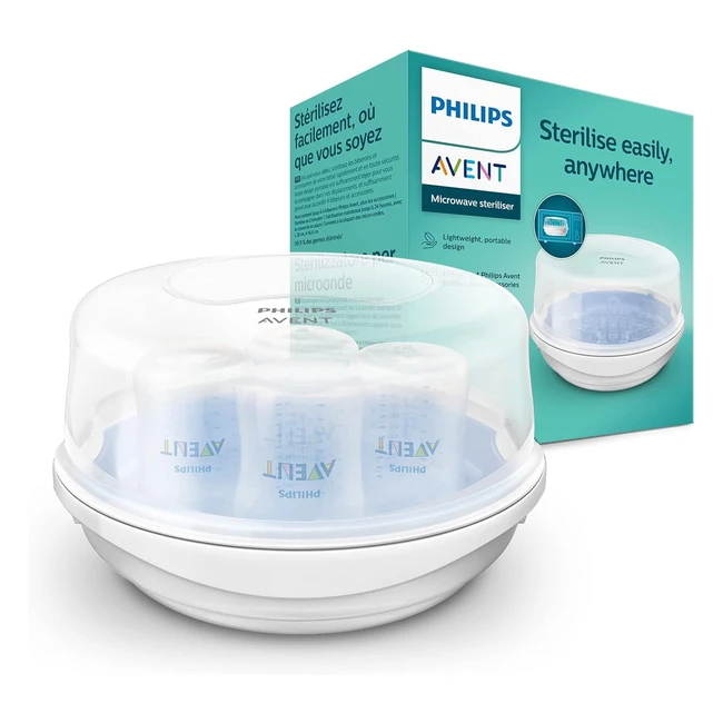 -33%Sterilizzatore per biberon Philips Avent che sterilizza fino a 4 biberon in soli 2 minuti a 1100-1850 watt. Ideale per casa o viaggio, leggero e compatto. Contenuto rimane sterilizzato fino a 24 ore. Pinze igieniche incluse.