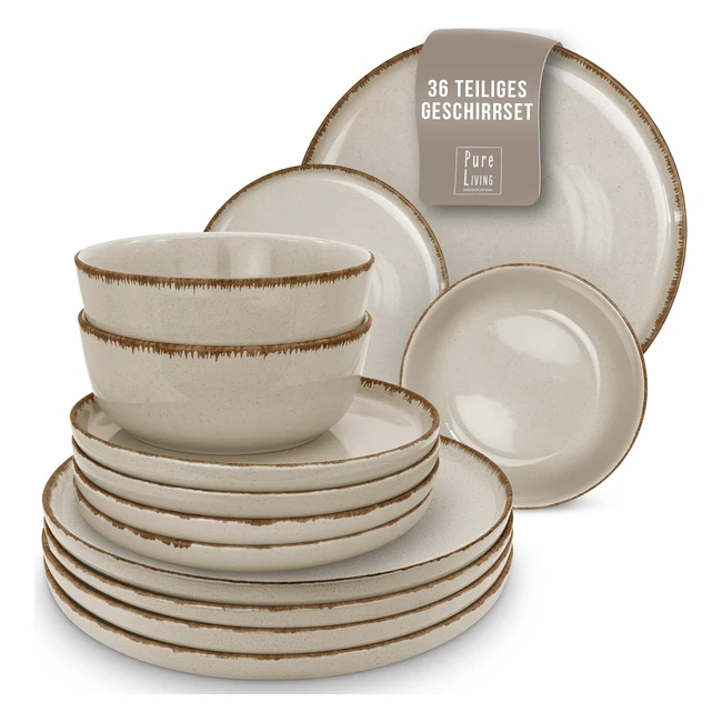 Stoneware Geschirr Set für 12 Personen rustikal 36-teilig modernes Design spülmaschinenfest