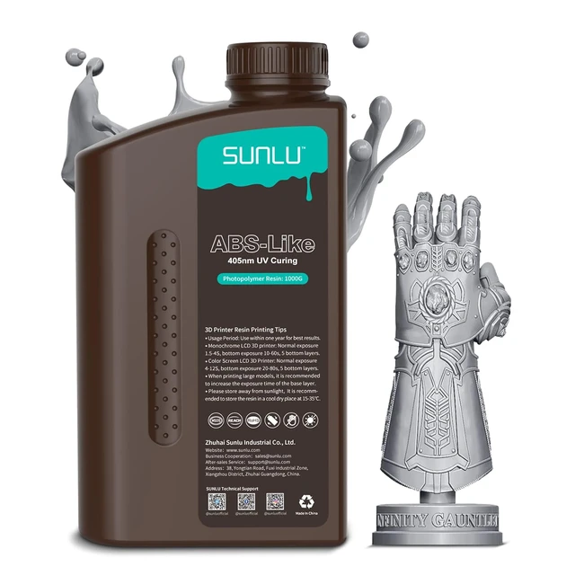 Experience the strength and toughness of Sunlu ABS-Like Resin - perfect for printing miniature objects with excellent abrasion resistance. Fast curing, low odor, and high precision results. Wide compatibility with leakproof packaging for secure transport.