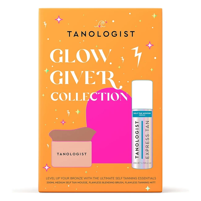 Tanologist Glow Giver Collection 200ml Medium Self Tan Mousse + Blending Brush & Tanning Mitt - Yellow