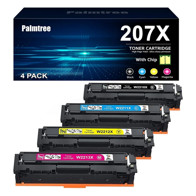 Toner Palmtree 207x Compatible pour HP 207x 207a - Multipack pour HP Color LaserJet Pro MFP M283fdw M255dw M282nw M283fdn - Noir Cyan Jaune Magenta