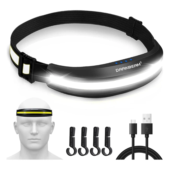 Torcia frontale LED Darkbeam USB-C Ricaricabile - Luce luminosa per cappello rigido - Clip COB - 230° Ampia luce rossa - Super leggera