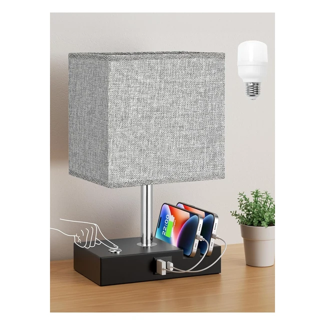 Touch Bedside Lamps with USB CA Charging Ports 2 Phone Slots 3-Way Dimmable Table Lamp Grey