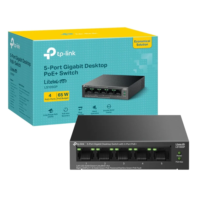 -18%Get blazing fast speeds with the TPLink 5-Port Gigabit Desktop Switch. Power up to 4 devices like IP cameras and access points with ease. Extend your transmission distance up to 250m. No configuration required, just plug and play. Perfect for surveillance camera deployment in large areas. Silent operation and durable design. Buy now!