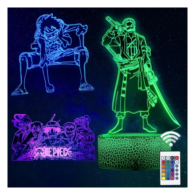 Veilleuse 3D LED Luffy One Piece - Cadeau Noël Enfant - USB - 16 Couleurs