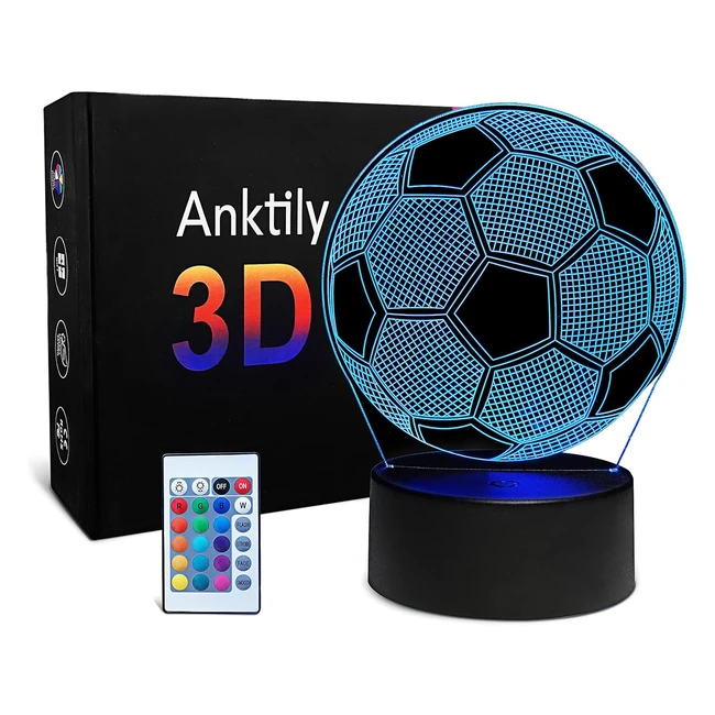 Veilleuse Football 3D LED Lampe Optique Illusion Enfant - 16 Couleurs Changeantes