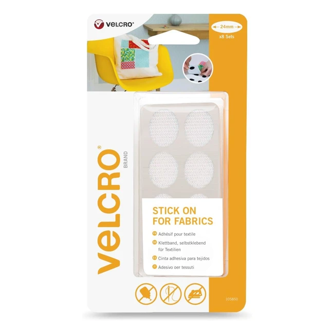 Velcro Brand Adesivo per Tessuti 24mm x 8 Bianco - Fissaggio Veloce e Facile