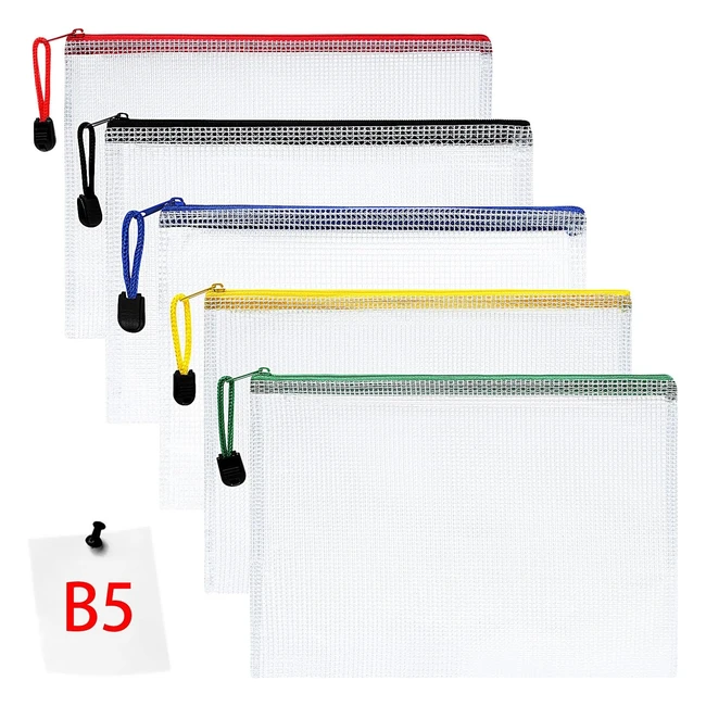Vicloon Plastic Wallets B5 Zip Lock Bags - Set of 5 - Mesh Document Wallet - Color Zipper