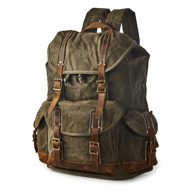 -5%Zaino da uomo/donna in tela cerata di alta qualità e pelle di cavallo pazzo. Resistente all'acqua, con ampio scomparto per laptop e varie tasche per un'organizzazione ottimale. Ideale per scuola, viaggi, escursioni e lavoro. Acquista ora!
