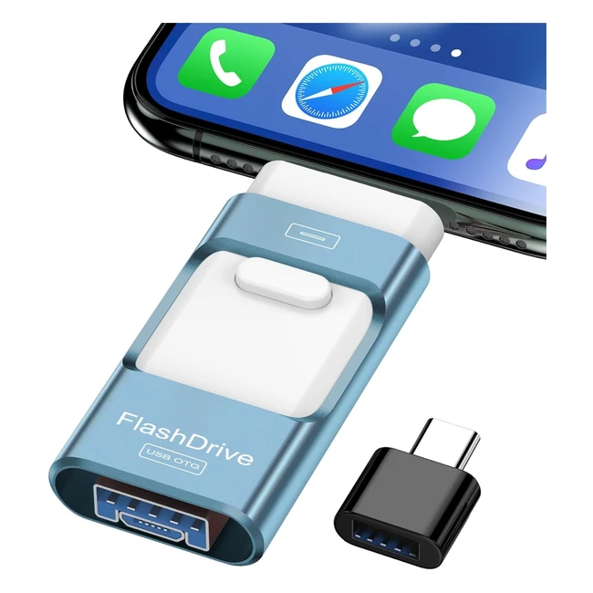 Zarmst Clé USB 512 Go Extension de Clé Mémoire Externe Photos Vidéos Fichiers Copiés en un Clic Bleu