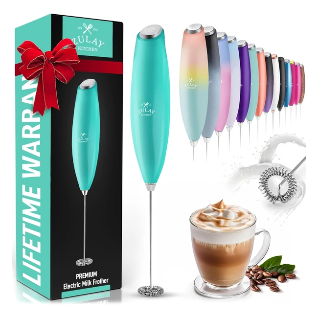 Zulay Powerful Milk Frother for Coffee - Upgraded Titanium Motor - Handheld Frother Electric Whisk - Milk Foamer Mini Blender and Electric Mixer - Latte Matcha - Aqua