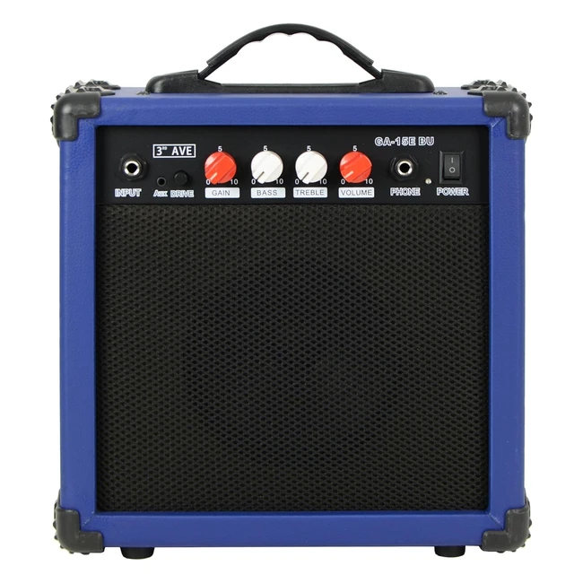 3rd Avenue 15W Guitar Practice Amplifier | Headphone Output | Overdrive Switch | 2 Band EQ | Portable Compact | Blue