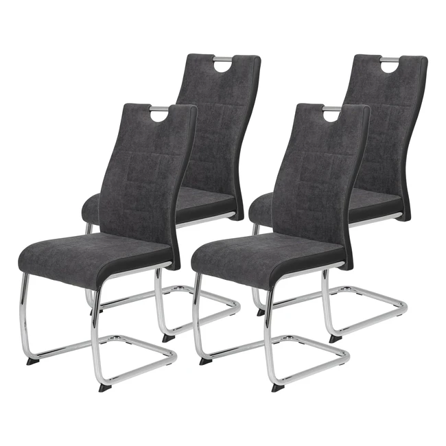 4er Set Schwingstuhl Alina, Webstoff, Anthrazitschwarz, Metallgestell Chrom, Lehne mit Griff