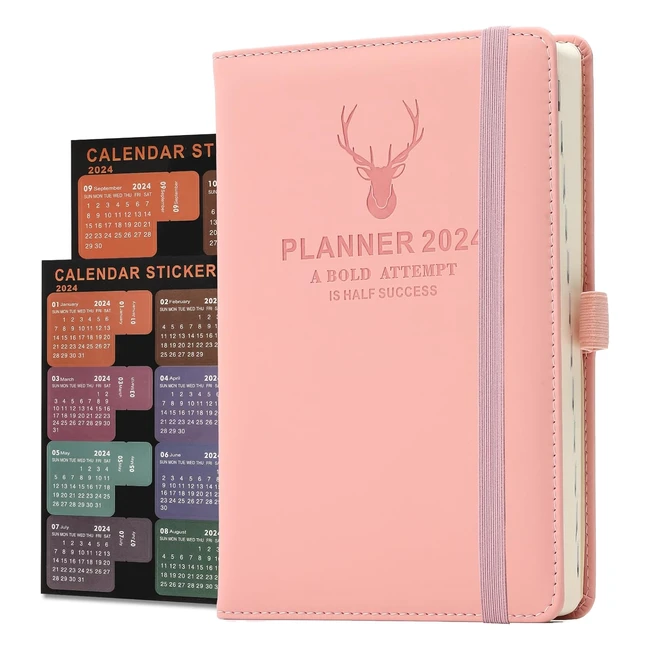 Agenda Académica 2024 Diaria A5 con Anillo de Pluma y Marcadores - Rosa