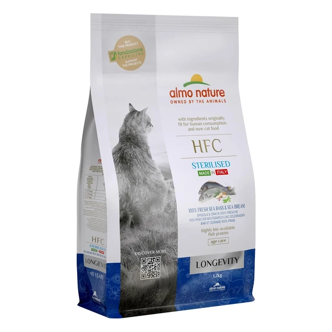 Almo Nature HFC Longevity Sterilized - Mangime Secco Bilanciato per Gatti - 100% Spigola e Orata Fresche - Ref.12345