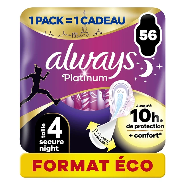 Always Platinum Serviettes Hygiéniques Taille 4 Secure Night 56 - Absorption Ultra Fines