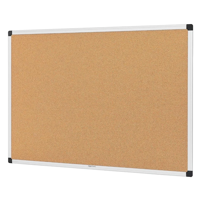 Amazon Basics Aluminum Frame Cork Notice Board 90cm x 60cm - Silver
