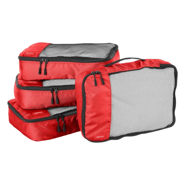 Amazon Basics Packing Cubes 4-Piece Set Medium Red | Double Zipper, Mesh Top Panel, Webbing Handle