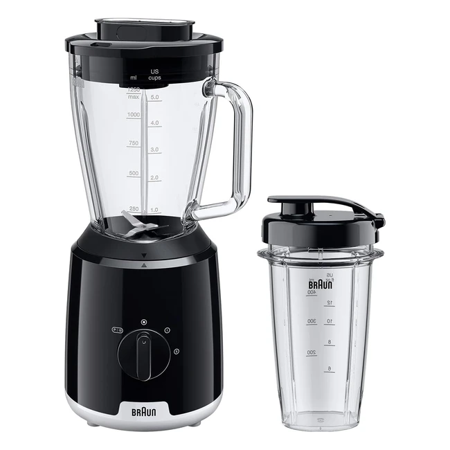 Batidora Braun PowerBlender JB1051BK 600W Negro - Jarra Triangular Vidrio - 2 Velocidades - Trituración Hielo