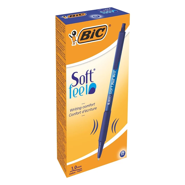 BIC Soft Feel Ballpoint Pens - Blue, Box of 12 - Medium Point 1.0mm - Lightweight Pens with Comfortable Grip