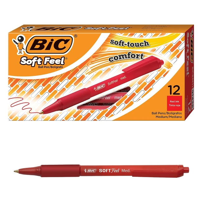 BIC Soft Feel Ballpoint Pens - Medium Point - Red - Box of 12 - Smooth Writing & Comfortable Grip