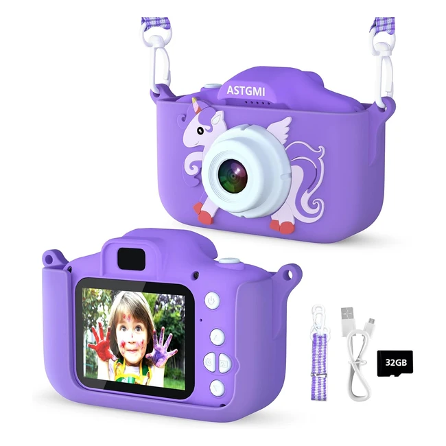 Cámara Infantil HD 1080p para Niños y Niñas - Fotos y Videos de Alta Calidad - Tarjeta SD de 32GB - Morado