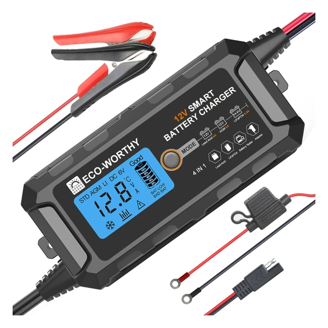 Cargador y Mantenedor de Batería Ecoworthy 5A 12V - Pantalla LCD - Plomo Ácido y Batería de Litio