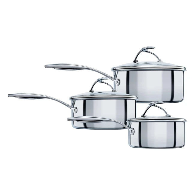 Circulon SteelShield Stainless Steel Saucepan Set 3 16/18/20cm Induction Hybrid Non Stick Glass Lids