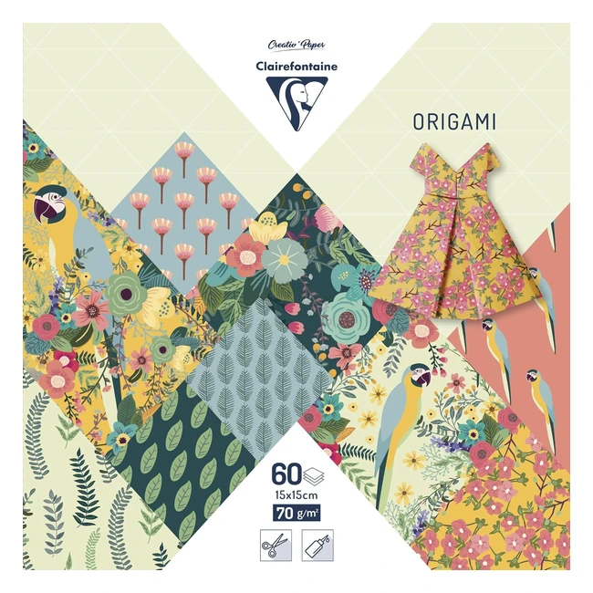 Clairefontaine 95351C - Carta Origami 60 Fogli 15x15cm 70gm - 30 Motivi Colorati - Hobby Creativo