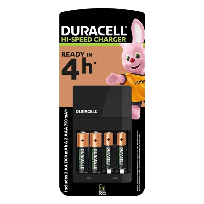 -15%Get fully charged batteries in just 4 hours! Duracell 4-Hour Battery Charger charges 4 AA rechargeable batteries quickly and efficiently. With a 90% full charge for 1300mAh AA NiMH batteries and 80% full charge for 750mAh AAA NiMH batteries, you can rely on long-lasting power. Don't wait around for hours, get the power you need fast. Comes with 2 AA 1300mAh and 2 AAA 750mAh Duracell rechargeable batteries. Charge both AA and AAA batteries and enjoy the convenience of Duracell's 5-year guarantee. Buy now and never run out of power again!