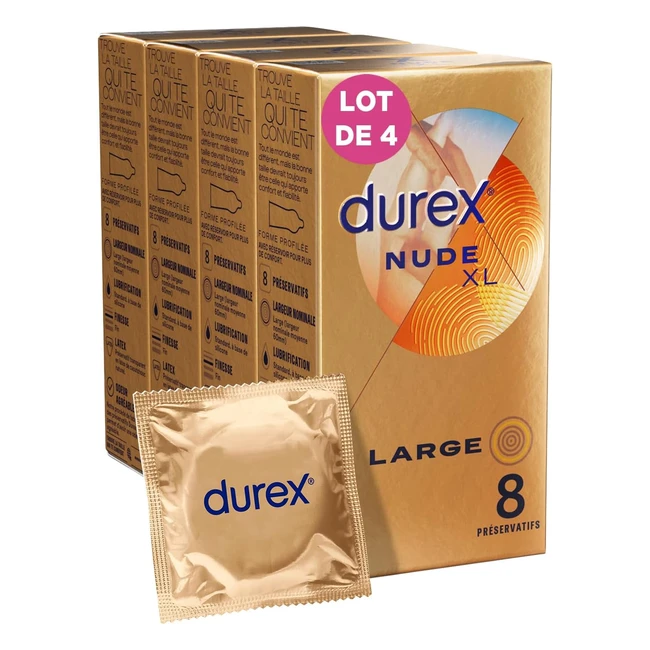 Durex Nude XL - Préservatifs homme fins et extra larges - Lot de 4 x 8 pièces