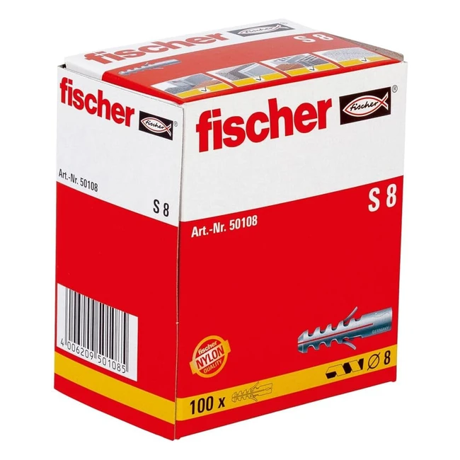 Fischer S 8 Spreizdübel mit 2-Fachspreizung | Befestigung Bewegungsmelder Briefkästen | 100 Stk. | ArtNr. 50108 Grau