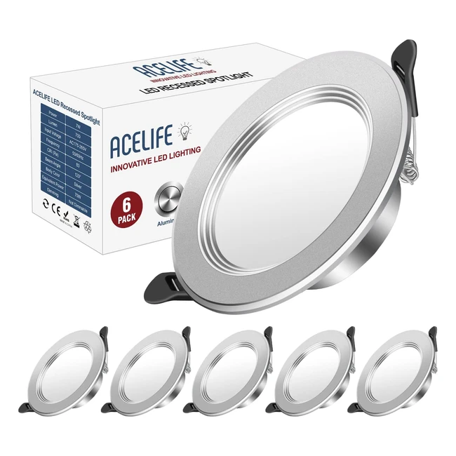 Foco Empotrable LED Redondo Acelife 7W 700Lm 6000K Metal Aluminio Juego de 6