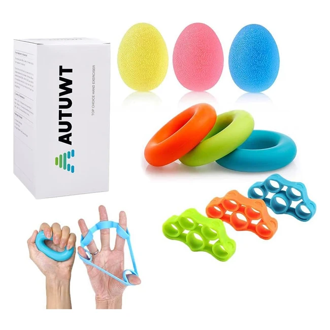 Fortalecedor de agarre de mano 9 pcs - Entrenador de dedos y fuerza silicona