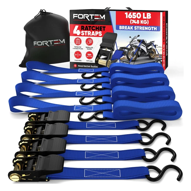 Fortem Ratchet Tie Down Straps 4x 46m Securing Straps 4x Soft Loops 748kg Break Strength