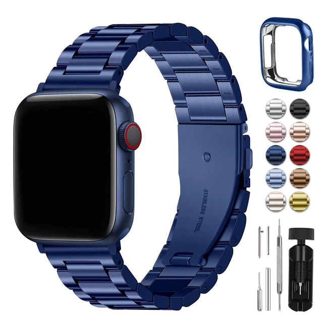 Fullmosa Metal Strap Compatible with Apple Watch 38mm 40mm 41mm - Stainless Steel Replacement Band - Series 9 8 7 6 SE SE2 5 4 3 2 1 - Blue