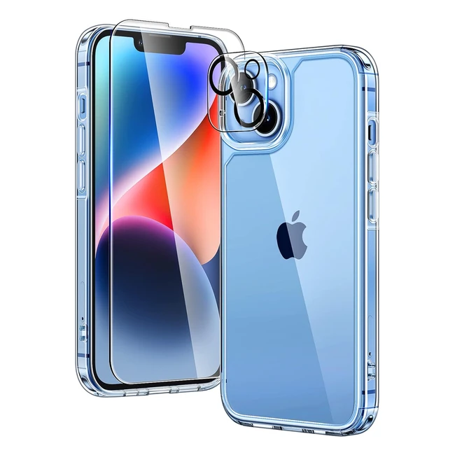 Funda Tauri 5 en 1 para iPhone 14 - Antichoque, Delgada, Protección Militar - Incluye 2 Protectores de Pantalla y 2 Protectores de Lente de Cámara - Transparente