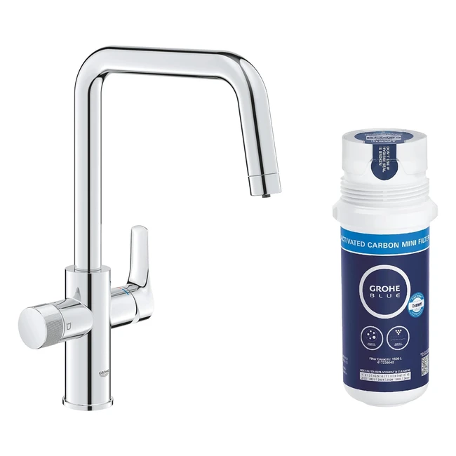 Grohe Blue Pure Start Kit - Eau filtrée avec robinet de cuisine - Filtre à charbon actif compact - Bec U chromé